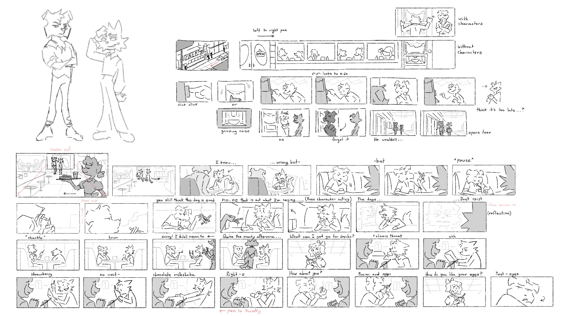 Dipper and Scruffy meet up at a diner to discuss business matters